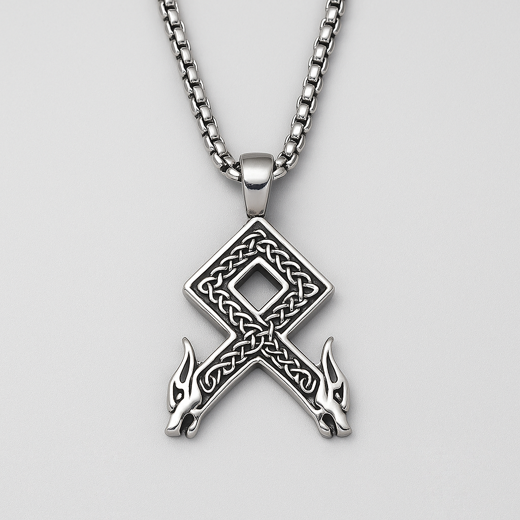 - Massivt runeanheng i rustfritt stål – inspirert av den gamle Othala-runen