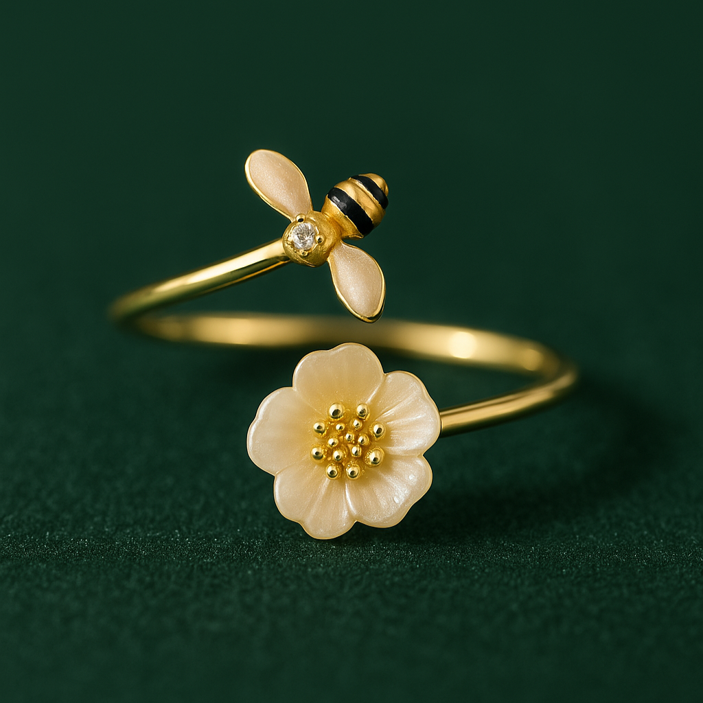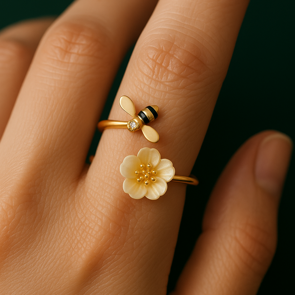 Pierścień Bloom & Bee to subtelny hołd dla więzi i wzrostu – z delikatnym kwiatem i pszczołą jako symbolami elegancji i miłości. Tymczasowo w obniżonej cenie – do wyczerpania zapasów.