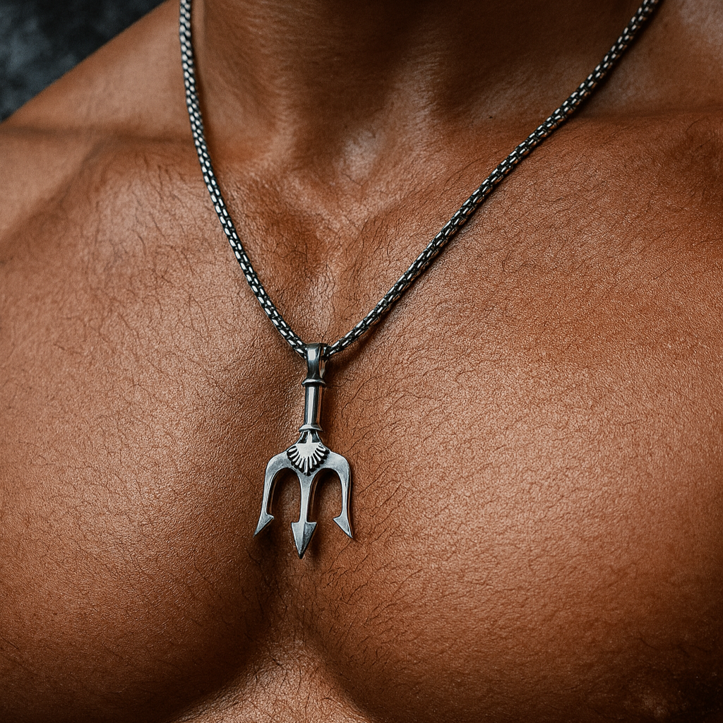 - Massieve drietand-hanger van roestvrij staal – symbool van macht, zee en dominantie